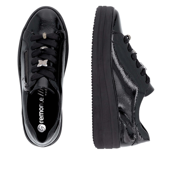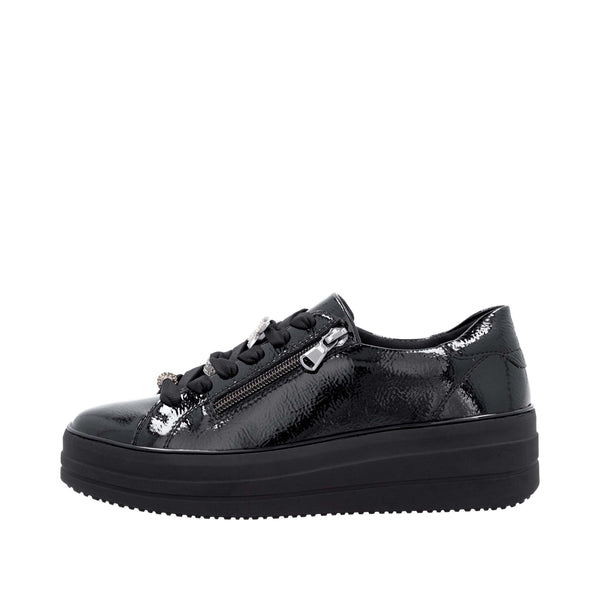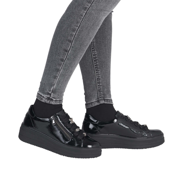 Women's lace or zipper up shoe in black by Remonte